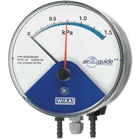 Манометры дифференциальные A2G (air2guide) модификации A2G-15 (air2guide P+E) имеют вторичный преобразователь, преобразующий деформацию чувствительного элемента в электрический выходной нормированный сигнал от 4 до 20 мА или от 0 до 10 В.