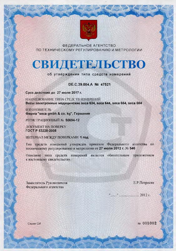 | Метрологическая характеристика | Весы seca 634, seca 644, seca 664, seca 684 |