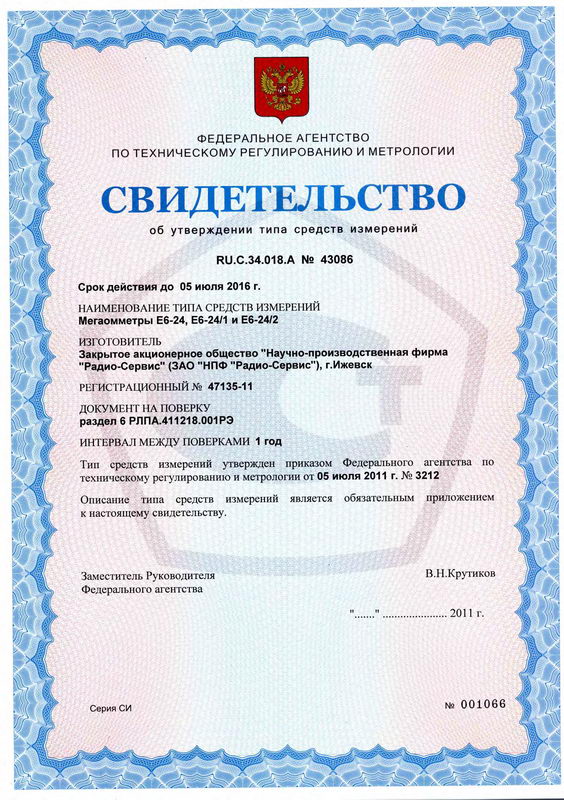 Поверка мегаомметра Е6-24, Е6-24/1, Е6-24/2