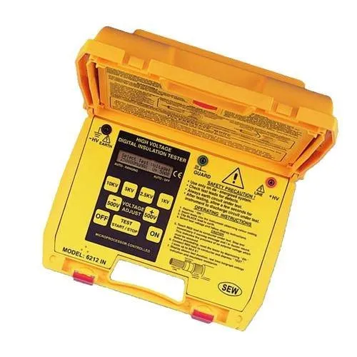 Мегаомметр SEW 6212 IN имеет переменное напряжение для измерения сопротивления изоляции от 500В до 10000В с шагом 500 В. Достоверность показаний аппарата достаточно высока, расхождение данных, полученных мегаомметром с фактическими, может составлять 5%. Все показания прибора сохраняются в перепрограммируемом ПЗУ (EEPROM).