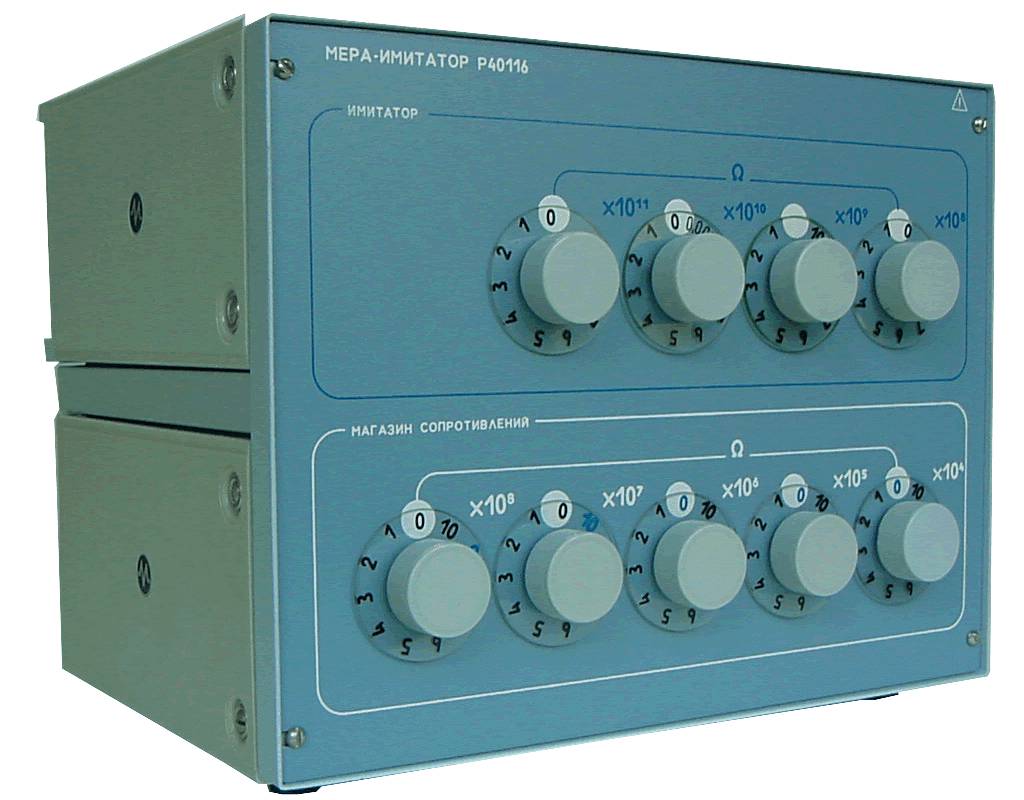 Конструктивно меры-имитаторы Р40116М представляют собой настольные электроизмерительные приборы с вертикальной лицевой панелью.