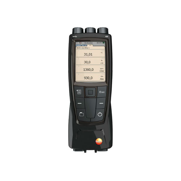 Системы кондиционирования воздуха снабжены фильтрами, предотвращающими попадание грязи из внешнего воздуха в воздух помещений. Необходимо регулярно проверять работоспособность данных фильтров. Для этого измеряется давление на входе и выходе фильтров. Результат – дифференциальное давление. Если разница давления слишком высока, то это означает, что фильтр загрязнён и требует замены. В приборе testo 480 имеется встроенный сенсор дифференциального давления, работающий в диапазоне 25…25 гПа. Для точности показаний предусмотрена температурная компенсация значения измерения дифференциального давления. Магнитные фиксаторы на задней панели прибора исключают необходимость постоянно держать прибор в руках.