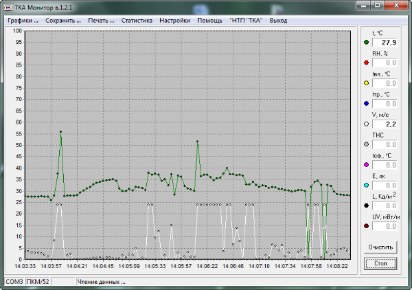 Оснащение интерфейса USB позволяет: расширить возможности прибора без ущерба для времени снятия информации, отказаться от бумажных носителей во время считывания параметров микроклимата.