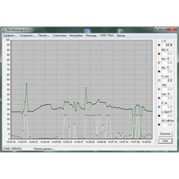 Оснащение интерфейса USB позволяет: расширить возможности прибора без ущерба для времени снятия информации, отказаться от бумажных носителей во время считывания параметров микроклимата.