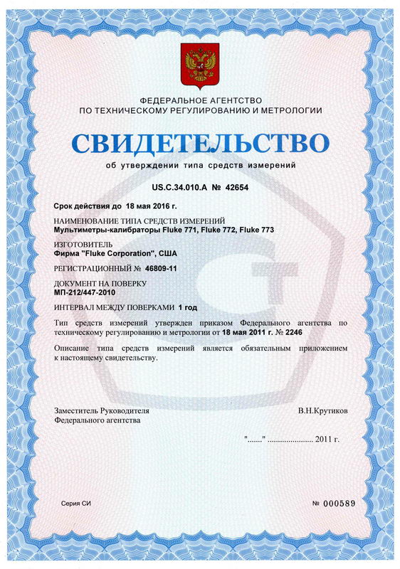 Поверка осуществляется по документу МП-212/447-2010 «Мультиметры-калибраторы Fluke 771, Fluke 772, Fluke 773. Методика поверки», утвержденному ГЦИ СИ ФГУ «РостестМосква» в октябре 2010 года. Перечень основных средств, применяемых при поверке: