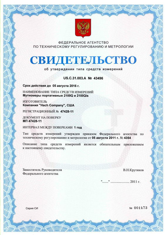 Поверка осуществляется по документу «Мутномеры портативные 2100Q и 2100Qis. Методика поверки», утвержденному ГЦИ СИ ФГУП «ВНИИОФИ» «27» мая 2011г.