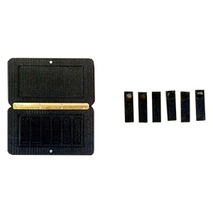 Набор Состоит из пяти Мер (№№ 1, 2, 3, 4, 5), представляющих собой светофильтры диаметром 10 мм из оптических Стекол НС8 и К8, и меры К8, представляющая собой светофильтр 113 оптического стекла К8. плотность светофильтра определяется толщиной стекол ПС8, а толщина стекла К8 дополняет до общей оптической толщины меры — 9 мм. Светофильтры помещены в пластмассовый корпус, имеющий форму параллелев11педа с габа.р11тнь1ми размерами, соответствующими габаритным размерам стандартных оптических кювет с поперечным сечением 12,4х12,4 мм.