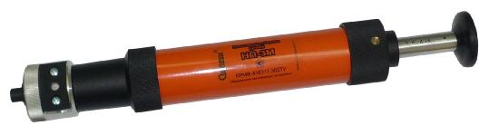 В основу работы насоса—пробоотборника НП— ЗМ положен принцип отбора пробы за счет разницы давления, создаваемого поршнем , перемещающемся в цилиндре насоса. Насос—пробоотборник состоит из цилиндра и штока с поршнем , который перемещается в цилиндре . Перемещение поршня осуществляется вручную . Объемы отбираемой газовой пробы соответствуют обозначениям на штоке поршня. Насос снабжен устройством для вскрытия индикаторных трубок и сигнальным устройством для контроля окончания прокачивания объема прокачиваемой пробы. Насос позволяет прокачивать любой объем газовой пробы , кратный 50 смз