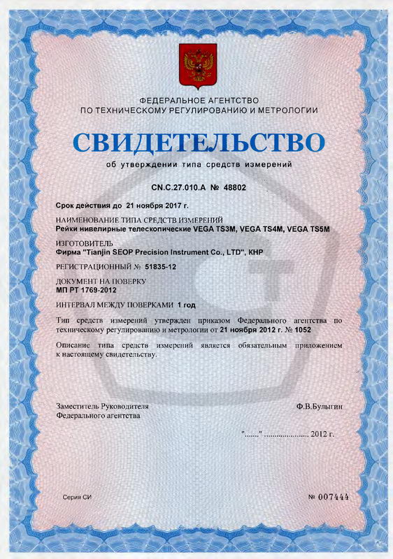 Нормативные и технические документы, устанавливающие требования к рейкам нивелирным телескопическим VEGA TS3M, VEGA TS4M, VEGA TS5M