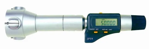 - Нутромер микрометрический НМ-СЦ с отсчетом показаний по электронному цифровому отсчетному устройству состоит из следующих элементов: корпус, микрометрический винт, измерительные поверхности с трехконтактным касанием измеряемому изделию, стебель, барабан, электронное цифровое отсчетное устройство, разъем для удлинителя, трещотка (фрикцион), встроенный источник питания, разъем для вывода результатов измерений на внешнее устройство.