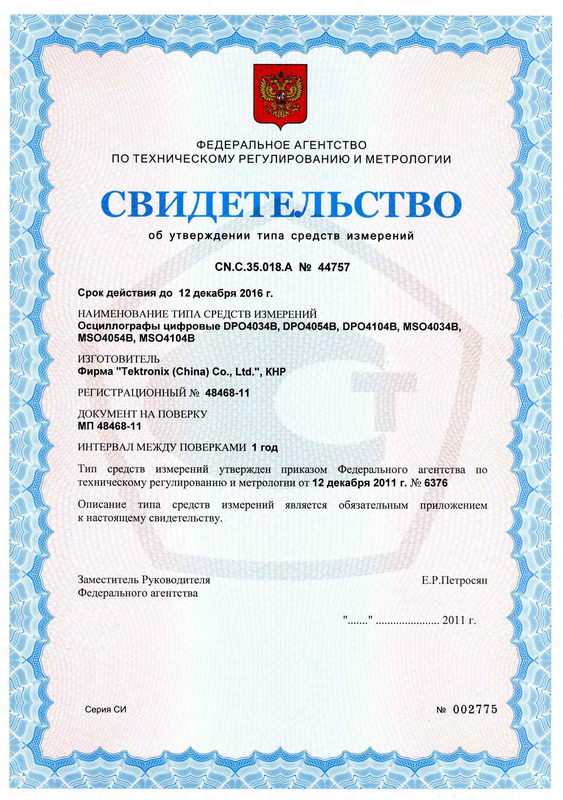 Поверка осциллографа DPO4034B, DPO4054B, DPO4104B, MSO4034B, MSO4054B, MSO4104B