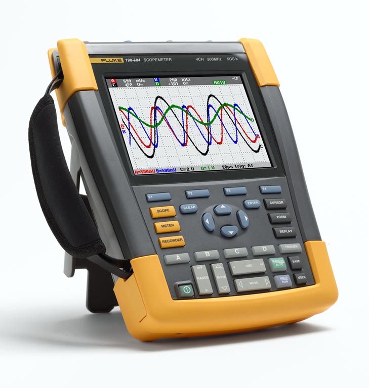 Осциллограф-мультиметр (скопметр) Fluke 190-504 — это прибор, который поможет решить любые задачи по поиску и устранению неисправностей. Они могут работать в режиме мультиметра, безбумажного регистратора TrendPlot™ и ScopeRecord™, а также в режиме свободных рук с помощью функции запуска Connect-and-View™.