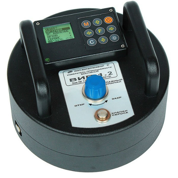 В приборе модификации ВИП-1.2 вакуумметрическое давление Рвак в камере создается встроенным в корпус прибора электрокомпрессором. Запуск электрокомпрессора осуществляется нажатием клавиши «М». После создания в камере разряжения с первоначальным значением абсолютного давления Рабс < 35 кПа (Рвак > 65 кПа), электрокомпрессор автоматически отключается. Прибор переходит в режим измерения.
