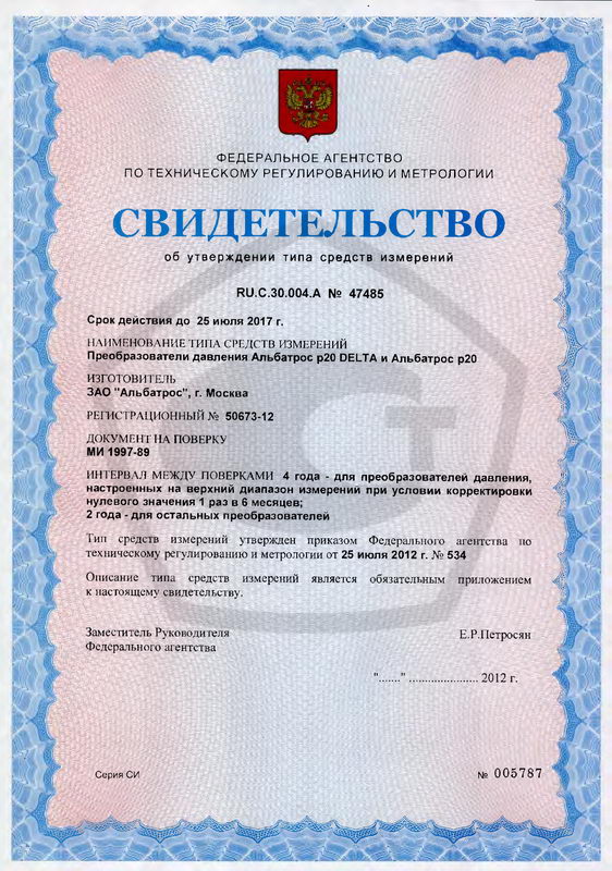 - ТУ 4212-026-29421521-11 «Преобразователи давления Альбатрос p20. Технические условия».