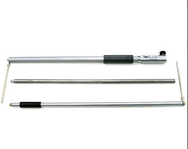 Внутри корпуса и трубки находится выдвижной шток, на котором установлена подвижная втулка. Стопорный винт служит для фиксации штока относительно втулки в требуемом положении. На втулке нанесен указательный штрих. Втулка со штоком подпружинены и имеют возможность перемещаться относительно корпуса и шкалы. В шток устанавливается удлинитель со вторым измерительным наконечником. На измерительных наконечниках свободно вращаются относительно их осей ограничительные стержни.