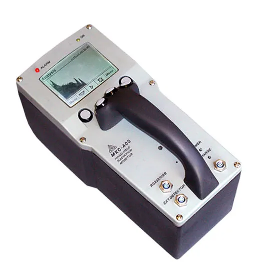 - основу работы радиометров по гамма-каналу положен принцип преобразования энергии гамма-квантов в чувствительном объеме сцинтилляционного детектора в электрические импульсы пропорциональной амплитуды с последующей их регистрацией и анализом многоканальным амплитудным анализатором. Гамма-спектр является исходной информацией для идентификации гамма-излучающих радионуклидов, а также для расчета МАЭД гамма-излучения. Радиометры также могут иметь два встроенных детектора на ЗНе-трубках для регистрации нейтронного излучения и внешний полупроводниковый детектор для регистрации альфа и бета излучения.