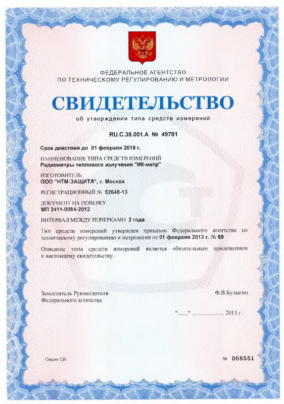 Поверка осуществляется по МП 2411-0084-2012 «Радиометр теплового излучения «ИК—метр». Методика поверки», утвержденной ГЦИ СИ ФГУП «ВНИИМ им. Д.И. Менделеева» в ноябре 2012 г.