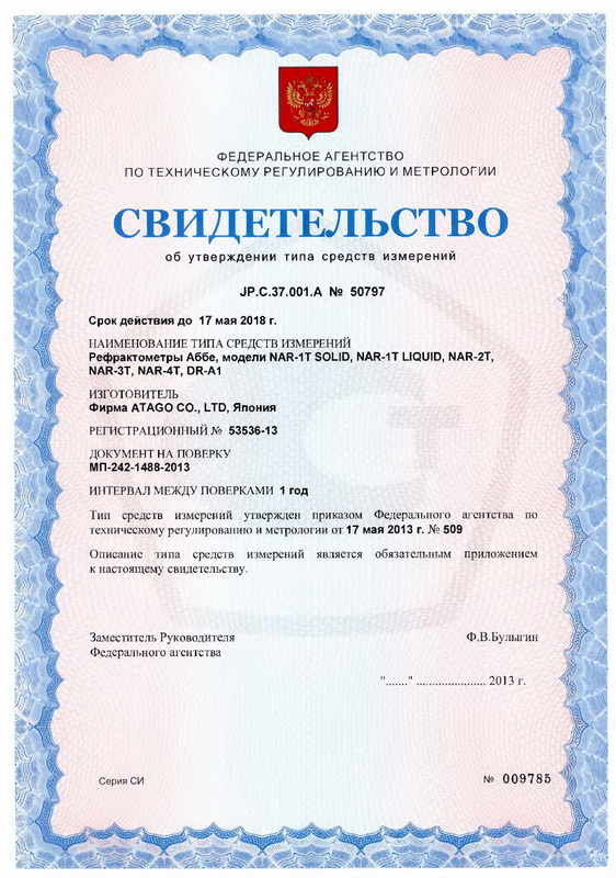 Нормативные и технические документы, устанавливающие требования к рефрактометрам Аббе, модели NAR-1T SOLID, NAR-1T LIQUID, NAR-2T, NAR-3T, NAR-4T, DR-A1