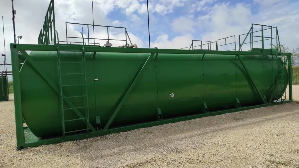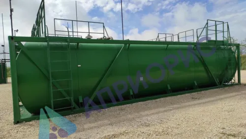 Резервуары представляют собой наземные стальные горизонтальные сосуды с обечайкой чемоданной формы и эллиптическими днищами. Резервуары установлены в каркасе контейнера на опорах с креплением в нижней части и фиксацией в верхней части с помощью талрепов.