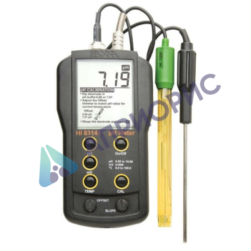 HI 83141 – это надежный в работе и простой в использовании портативный рН-метр/милливольтметр/термометр pH/mV/°C метр. Вместе с ним в работе используется рH-электрод HI 1230B и HI 7669AW датчик температуры, которые крепятся с помощью отдельных соединений (входят в комплект поставки). Поверка рН/мВ/С-метра HI83141 осуществляется в аккредитованной лаборатории и занимает от 1 до 5 дней.