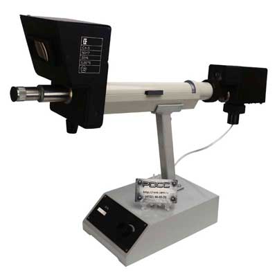 Сахариметр состоит из измерительной головки и осветительного узла, соединенных между собой траверсой, которая закрепляется на основании при помощи стойки.