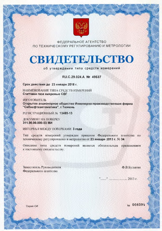 Модификации и поверка счётчика газа вихревого СВГ.М
