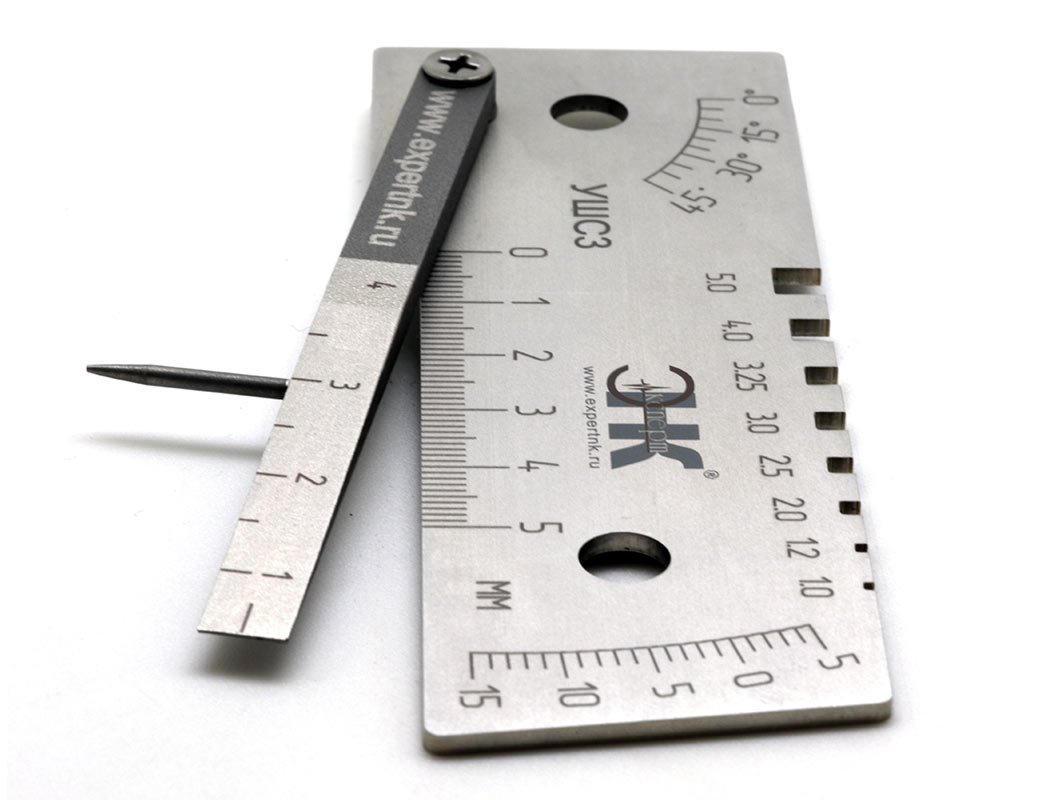 Назначение: для измерений глубины дефекта шва, высоты усиления стыкового шва, высоты притупления, ширины шва, углов разделки, зазора между свариваемыми деталями; для контроля ширины пазов, определения диаметра электродов.