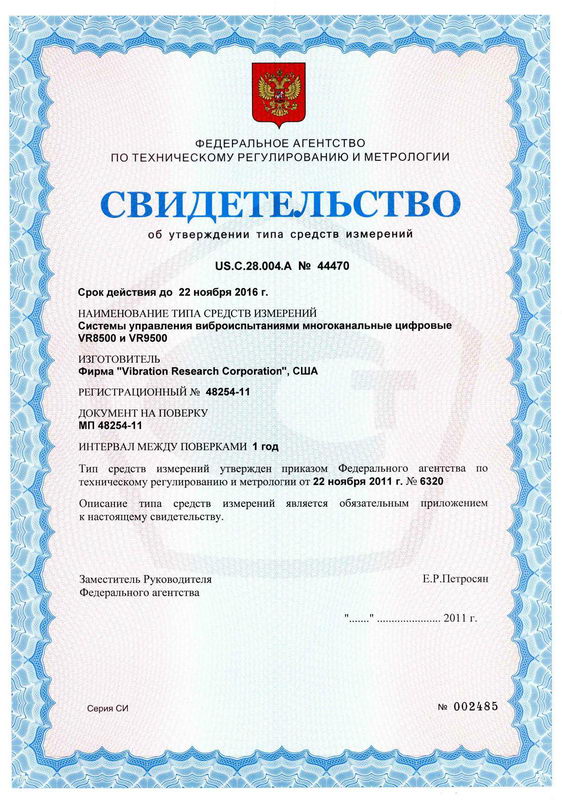 Поверка системы управления виброиспытаниями многоканальной цифровой VR8500 и VR9500