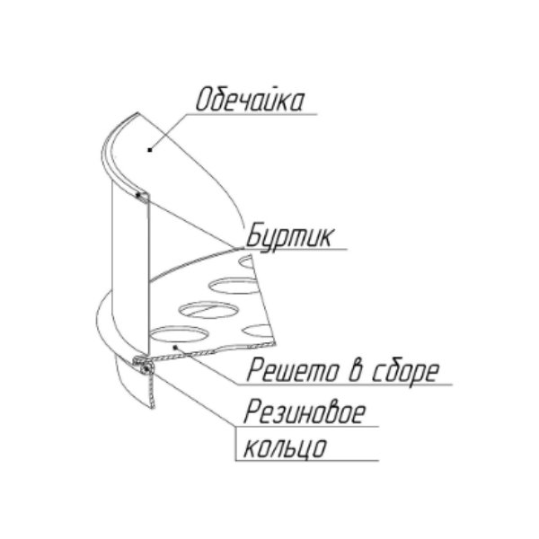 В месте крепления решета и на верхнем торце обечайки выполнены круговые буртики, а в средней части – зиг, обеспечивающие жесткость сита.