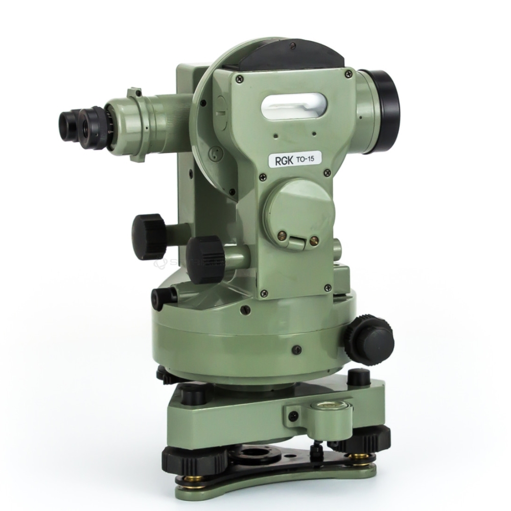 Выравнивание осуществляется с помощью встроенного уровня и плавных винтов наводки. Фиксирующие винты надёжно закрепят оптический теодолит RGK TO-15 в горизонтальном положении на время измерений.