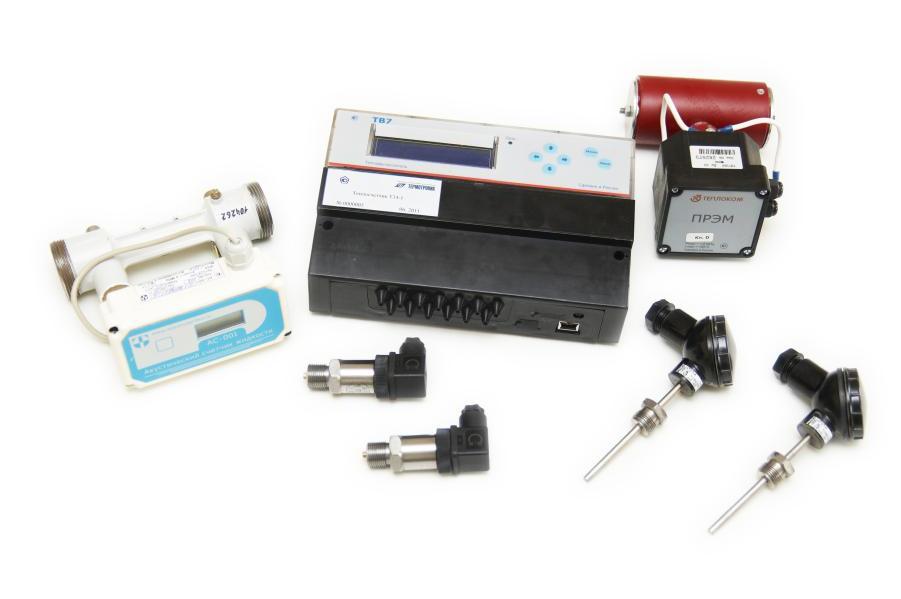 Теплосчетчики являются комбинированными средствами измерений, состоящими из функциональных блоков (составных частей) — средств измерений утвержденного типа: тепловычислителя (далее — вычислителя) ТВ7 (номер Госреестра 46601-11), преобразователей расхода (расходомеров, счетчиков), термопреобразователей сопротивления и их комплектов, преобразователей давления, типы которых приведены в таблице 1.