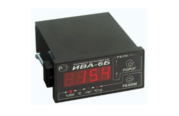 - сравнение текущего значения влажности и/или температуры с величинами верхнего и нижнего порогов и выдачу светового, релейного и токового (0…5 мА) сигналов (в термогигрометре Ива-6Б).