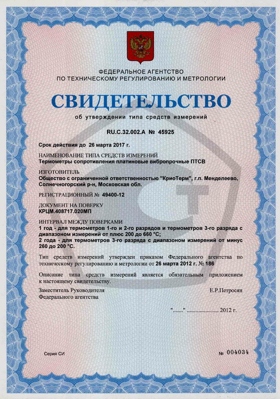 Нормативные документы, устанавливающие требования к термометрам сопротивления платиновым вибропрочным ПТСВ
