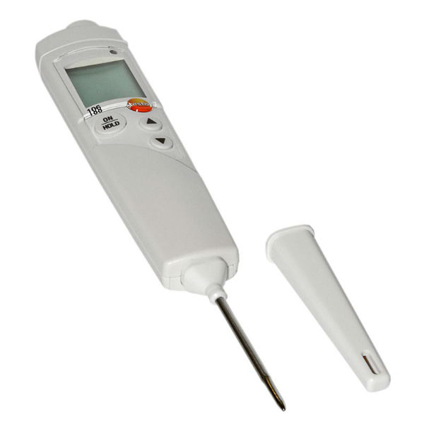 testo 106, термометр для измерения внутренней температуры продукта с тонким и прочным измерительным наконечником, идеально подходит для быстрого измерения внутренней температуры в гастрономии, столовых, ресторанах, супермаркетах и т.п.