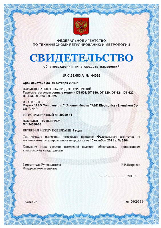 Нормативные документы, устанавливающие требования к термометрам электронным, модели DT-501, DT-510, DT-520, DT-621, DT-622, DT-623, DT-624, DT-625
