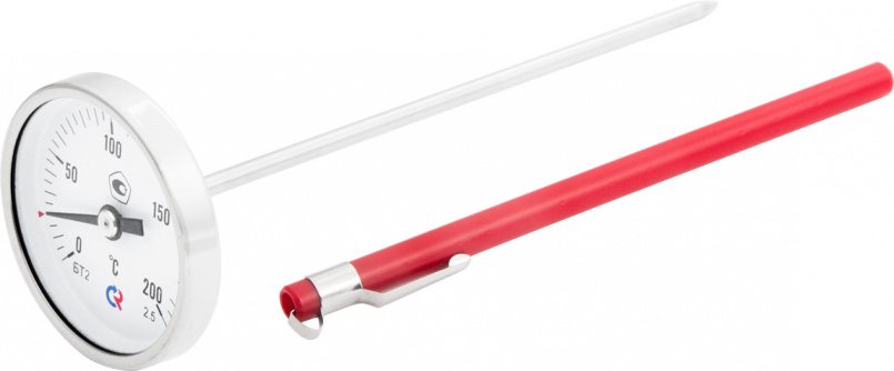 Тип БТ, серия 220. Биметаллический коррозионностойкий термометр со штоком в виде иглы (погружной термометр) предназначен для измерения температуры густых, сыпучих и вязких сред. Принцип действия термометров БТ основан на зависимости деформации чувствительного элемента от измеряемой температуры. В качестве чувствительного элемента используется биметаллическая пружина. Биметаллическая пружина изготавливается из двух прочно соединенных металлических пластин, имеющих различные температурные коэффициенты линейного расширения. При изменении температуры пружина изгибается и вращает стрелку термометра. Один конец пружины закреплен внутри штока, а к другому присоединяется ось стрелки. Поверка термометров общетехнических специальных (со штоком) Тип БТ, серия 220 проходит в аккредитованной лаборатории и занимает от 1 до 5 дней.