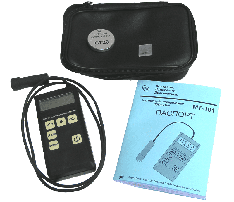 Государственная поверочная схема для средств измерений толщины покрытий в диапазоне от 1 до 20000 мкм», технические условия ТУ-4276-020-52736667-09 «Толщиномеры покрытий магнитные МТ-101-00, МТ-101-01, МТ-201-00, МТ-201-01 иМТ-201-02».