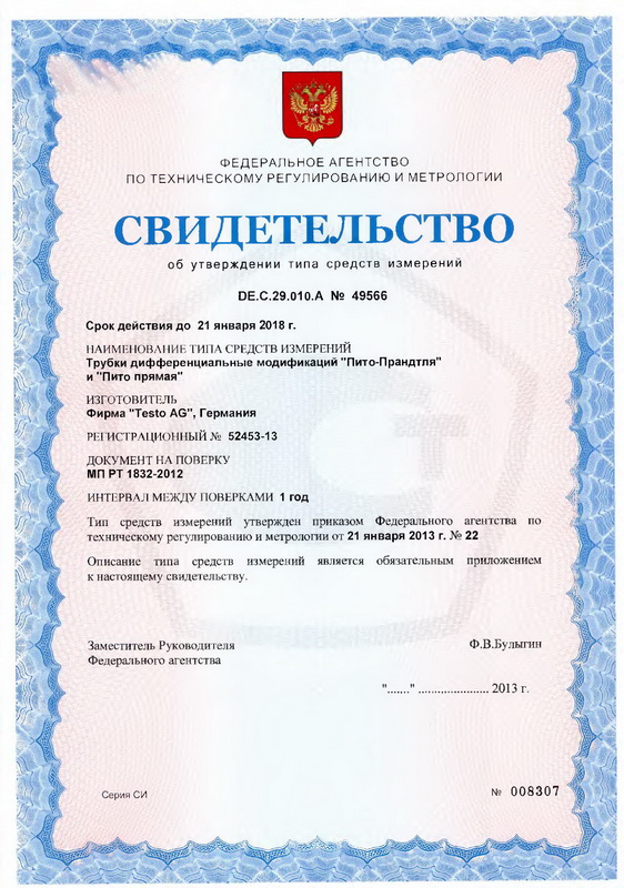 Поверка осуществляется по МП РТ 1832-2012 «Трубки дифференциальные модификаций «Пито-Прандтля» и «Пито прямая», утвержденной ГЦИ СИ ФБУ «Ростест — Москва» 18.10.2012 г. Основные средства поверки: