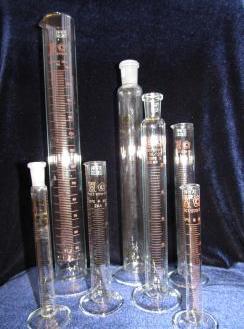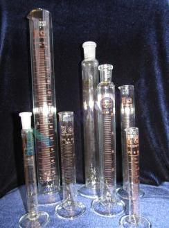 Цилиндры 2-го класса точности представляют собой стеклянные сосуды цилиндрической формы, по всей длине которых нанесена шкала с оцифрованными отметками.