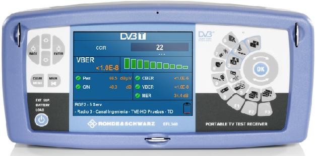 ТВ-приемники портативные измерительные R&S EFL240/R&S EFL340 включают в себя основные телевизионные стандарты аналогового ТВ: M, N, B, G, I, D, K и L систем цветности PAL, SEKAM, NTSC, автоматическую корректирующую систему для получения точных результатов измерения уровня входного телевизионного сигнала и отношения уровней видеонесущей к шуму и видеонесущей к аудионесущей.