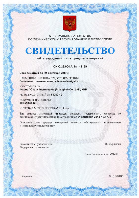 Поверка осуществляется по документу МП 204-21-2017 «Весы электронные неавтоматического действия серии Navigator. Методика поверки», утвержденному ФГУП «ВНИИМС» 10.05.2017 г.