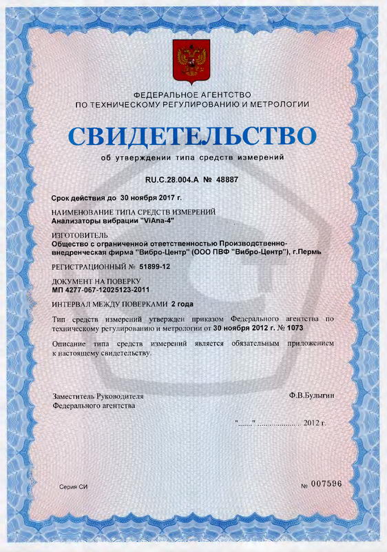 Универсальный переносной прибор марки ViAna-4 (Vibro Analyzer, 4 независимых канала) является самым технически и функционально эффективным регистратором и анализатором вибрационных сигналов среди своих аналогов. По своим техническим и функциональным возможностям он ни в чем не уступает приборам, выпускаемым мировыми лидерами в производстве средств вибрационного контроля. Поверка виброанализатора ViAna-4 осуществляется в аккредитованной лаборатории и занимает от 1 до 5 дней.