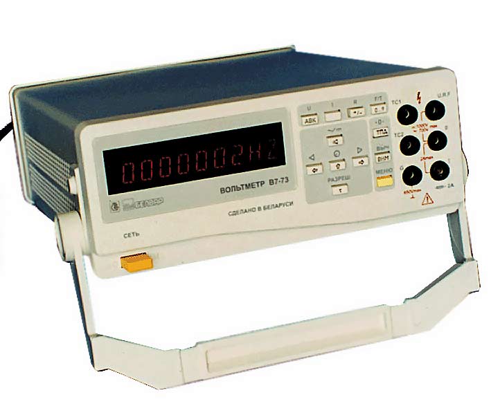 Вольтметры имеют базовую модель В7-73 и 2 модификации В7-73/1, В7-73/2. В вольтметре В7-73/1 реализован интерфейсный блок с байт—последовательным, бит-параллельным способом обмена информацией через КОП. Вольтметр В7-73/2 обеспечивает обмен информацией по последовательному асинхронному интерфейсу типа «Стык С2». В вольтметре В7-73 блок сопряжения с внешними устройствами отсутствует.