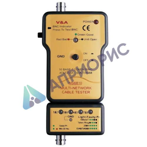 Предназначен для проверки коаксиальных (BNC) кабелей, экранированных (DTP) и неэкранированных (STP) витых пар на соответствие стандартам 10Base-T, Token Ring, 568A, 568B и AT&T258A;