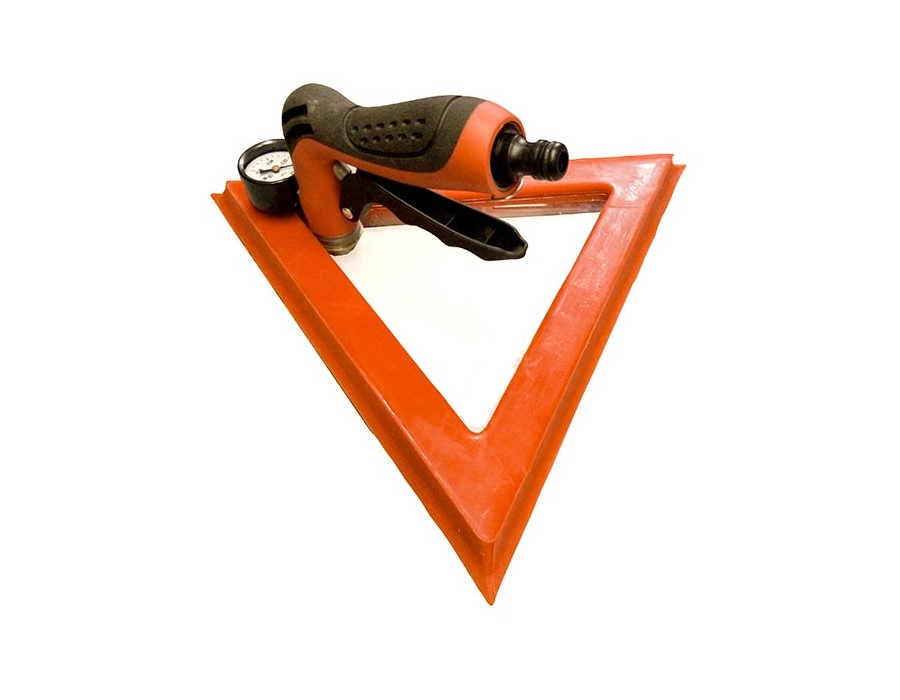 Вакуумная рамка треугольная предназначена для контроля герметичности пузырьковым методом внутренних сварных углов образованных тремя плоскостями. Контроль герметичности пузырьковым методом позволяет выявить сквозные дефекты в сварных соединениях изделий из стали и пластика. Рамка треугольная применяется для контроля таких объектов как резервуары, котлы, трубопроводы, топливные баки, облицовки и прочие объекты с односторонним доступом.
