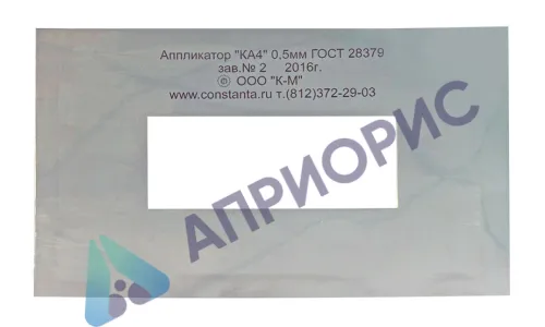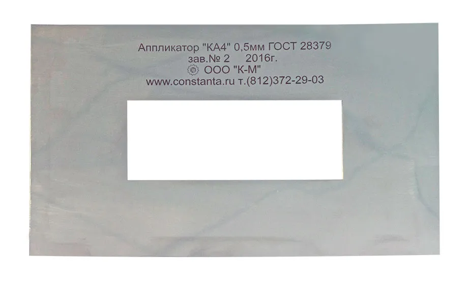 Аппликатор представляет собой металлическую пластину с прямоугольным отверстием. Высота отверстия (толщина пластины) определяет толщину наносимого слоя.