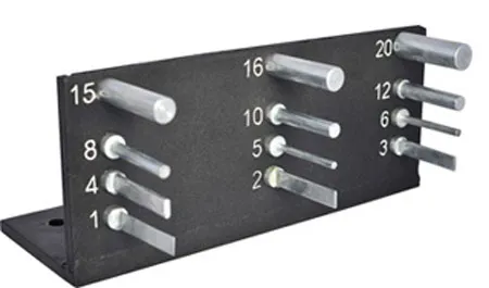 Предназначен для измерения прочности и эластичности покрытий при изгибе вокруг набора цилиндрических стержней, диаметром от 1 до 20 мм.