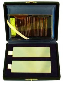 Хромоникелевые испытательные панели MAGNAFLUX представляют собой латунные пластины размером 100мм х 70мм х 2 мм с никель-хромовым покрытием заданной толщины. На никель-хромовом покрытии имеются искусственно созданные параллельные трещины. Трещины создаются при изготовлении пластин за счет приложения растягивающего усилия в направлении, перпендикулярном предполагаемому направлению трещин. Из-за того, что латунь более пластична по сравнению с никель-хромом трещины образуются только в покрытии. При изготовлении, после получения трещин пластины разрезают пополам перпендикулярно направлению трещин, т.е. получается комплект из двух практически одинаковых тест-панелей. За счет этого панели являются эффективным средством сравнения характеристик различных средств капиллярного контроля и слежения за износом пенетранта на линиях капиллярного контроля. Панели выпускаются с глубиной трещин 50, 30, 20 и 10 мкм. При этом 10 мкм панели используются для контроля высокочувствительных пенетрантов, а 50 мкм панели - для низкочувствительных пенетрантов.