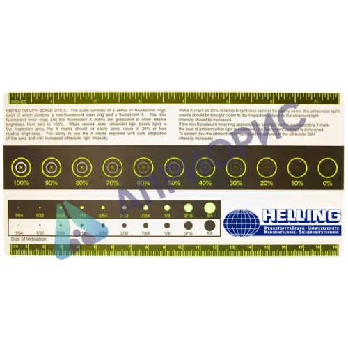 Контрольная шкала используется под ультрафиолетовым излучением для определения того, являются ли достаточными яркость флуоресценции на контролируемом объекте и контраст с остаточным окружающим освещением.