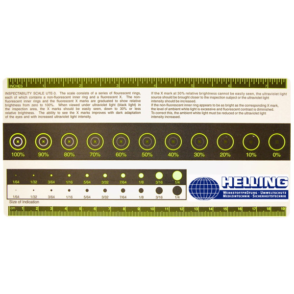 Контрольная шкала используется под ультрафиолетовым излучением для определения того, являются ли достаточными яркость флуоресценции на контролируемом объекте и контраст с остаточным окружающим освещением.